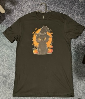 This cute black cat tee is just purrrr-fect for the Halloween season. This is available in our black, 100% cotton unisex tee in sizes s-2xl.