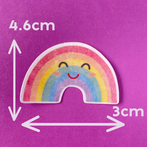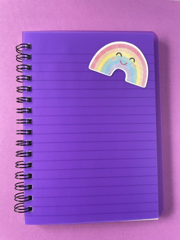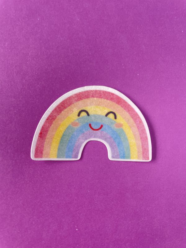 Die cut vinyl sticker in our happy rainbow design.