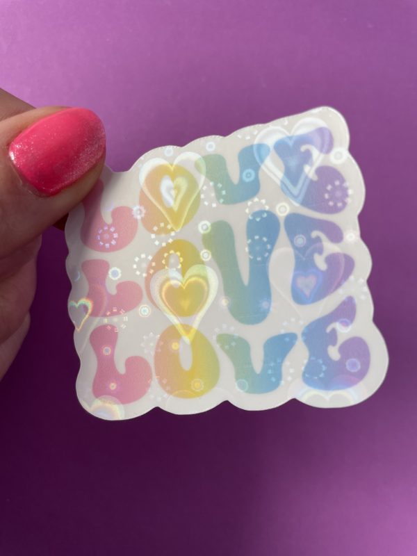 This sticker is finished with a holographic heart overlay which helps to make it long lasting and super cute!!