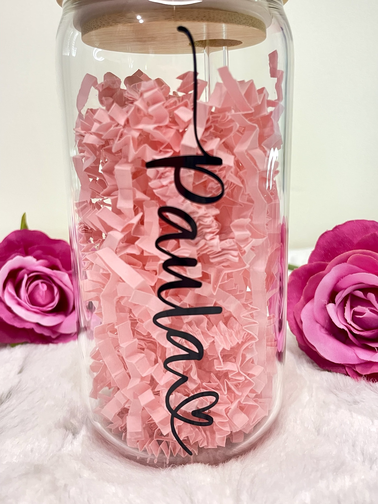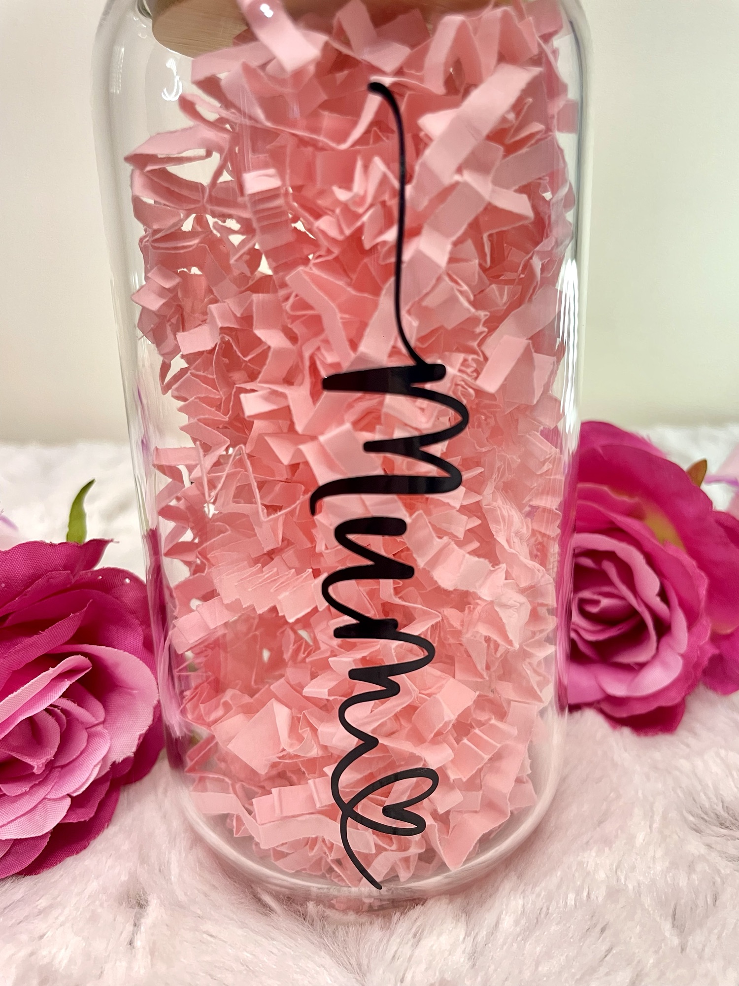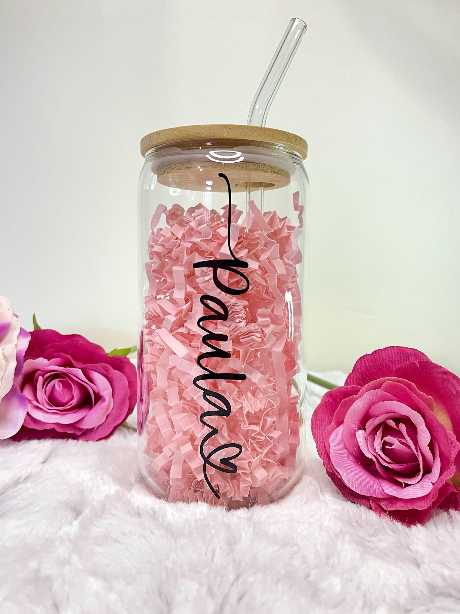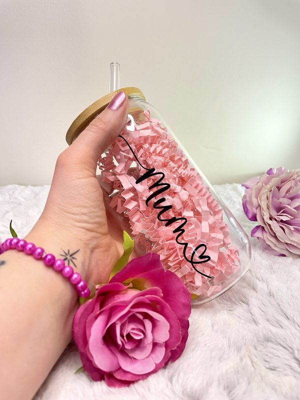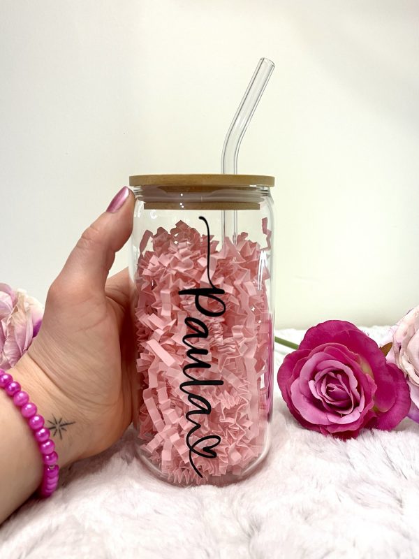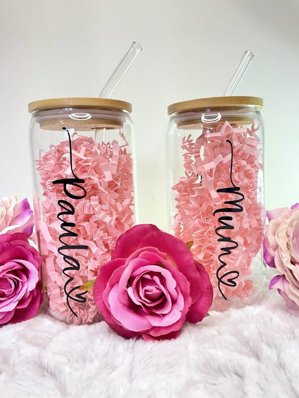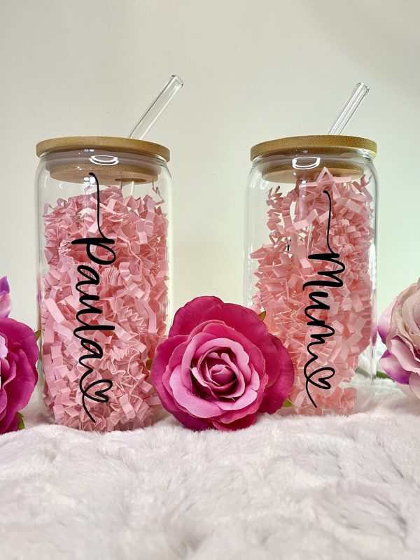 Our personalised named can glass’ make perfect, thoughtful gifts! They can be personalised with a name of your choice with a heart, as shown in the images. Currently the personalisation is applied in black however if you require another colour please feel free to message me.