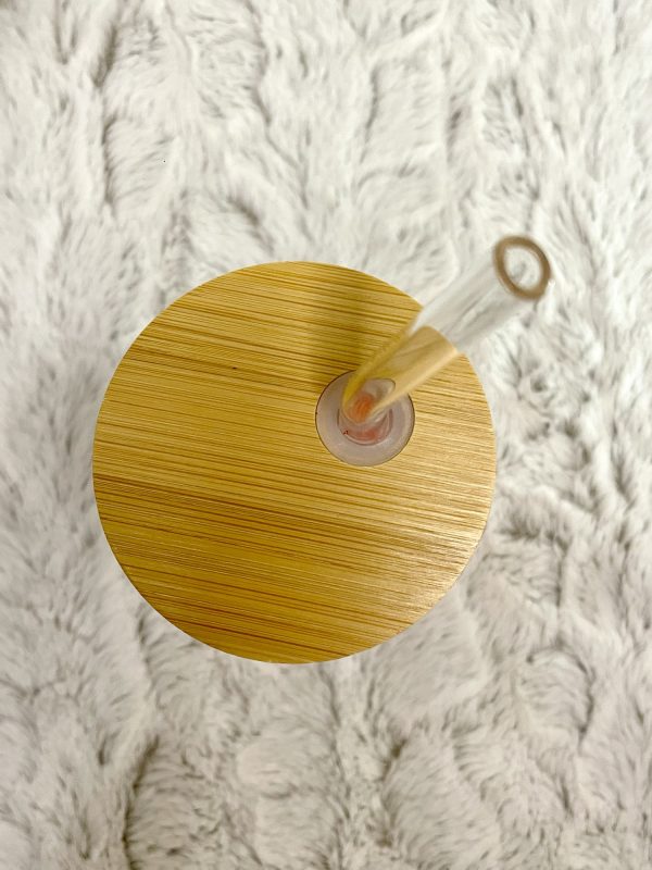Our glasses are approx 16oz and are made using high-quality, clear glass. They feature a bamboo lid and a glass straw. When storing, it is always best to keep the bamboo lid off the cup and ensure it is fully dry.