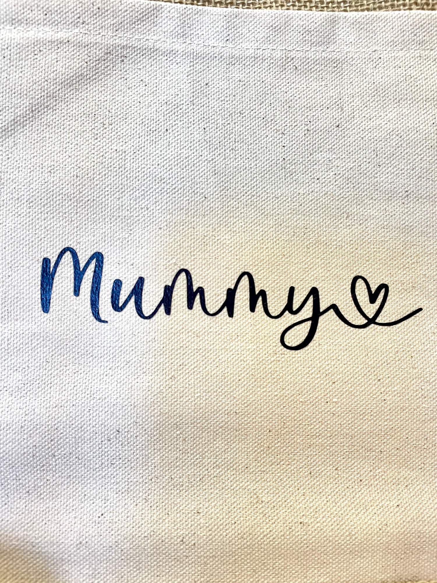 These bags will come personalised with a name of your choice (In the font shown in the images)? applied in black vinyl.
