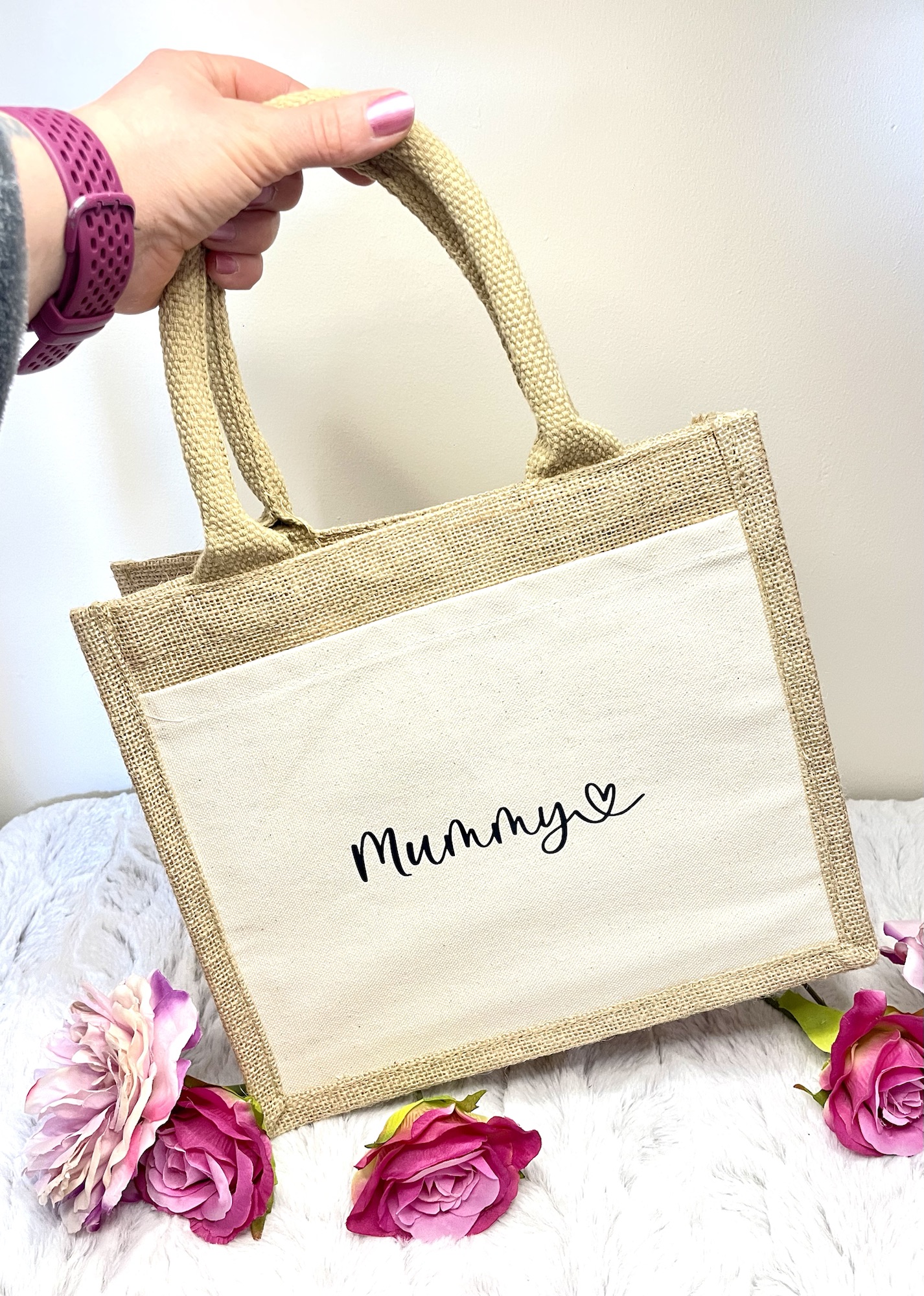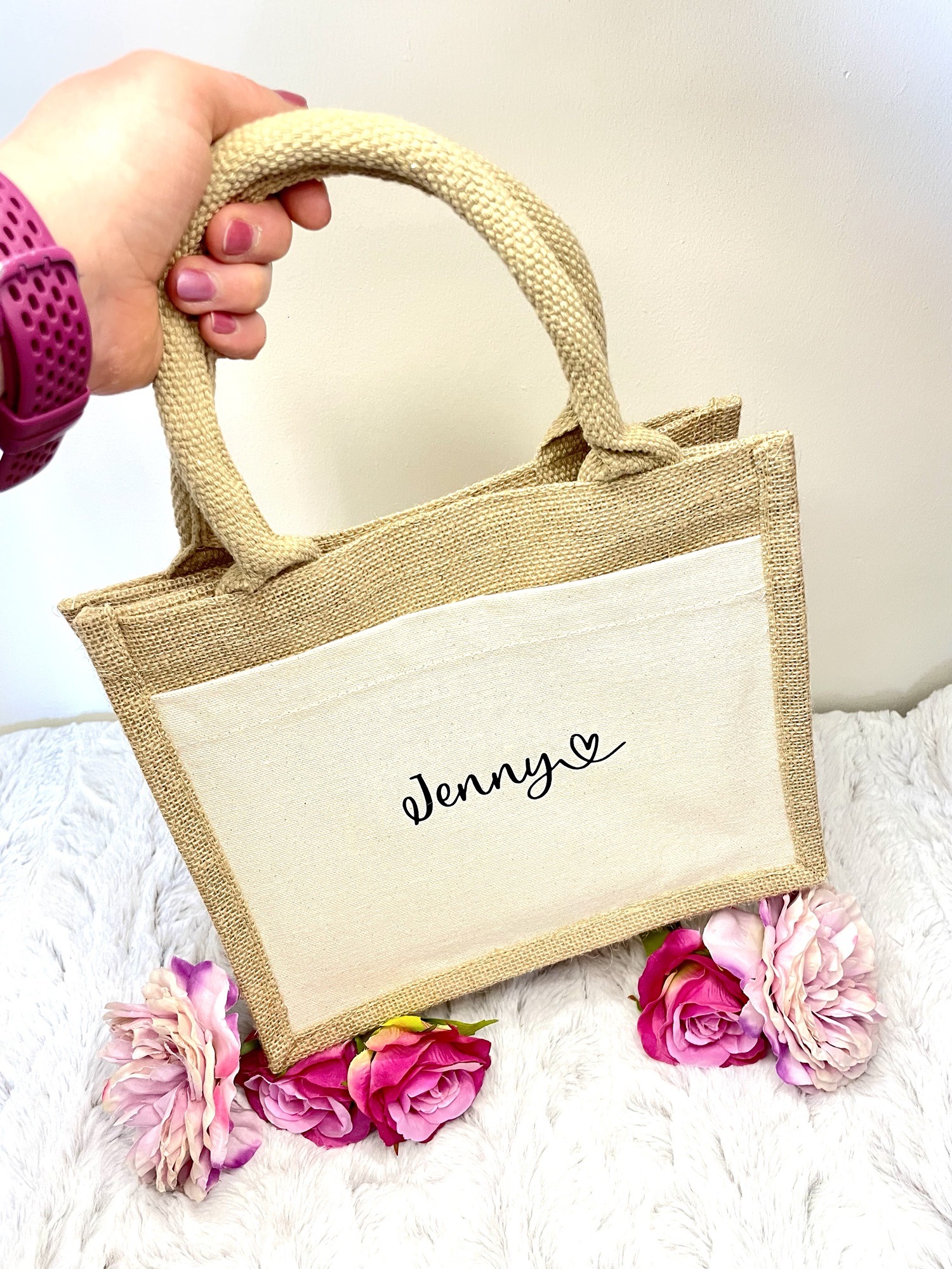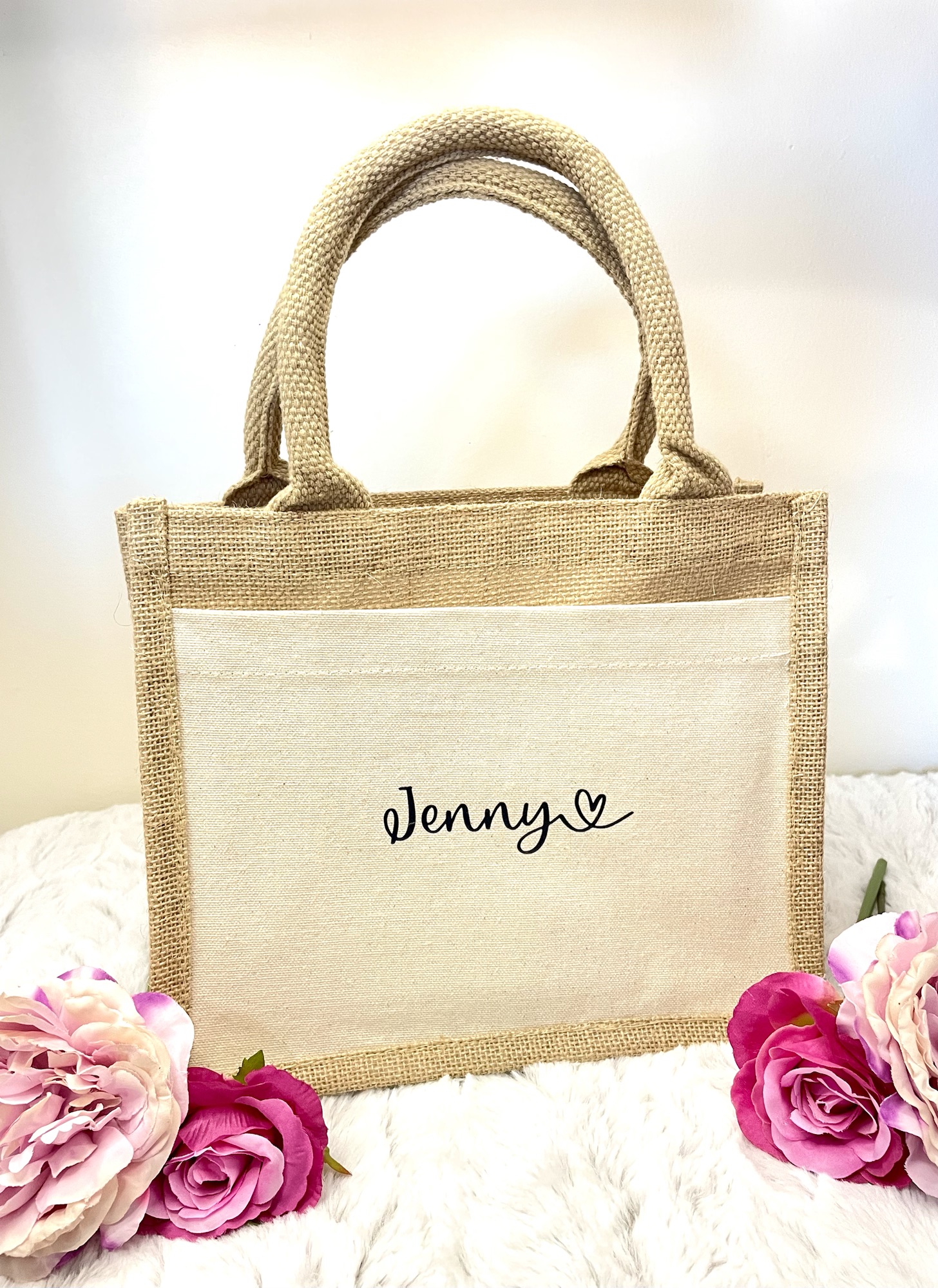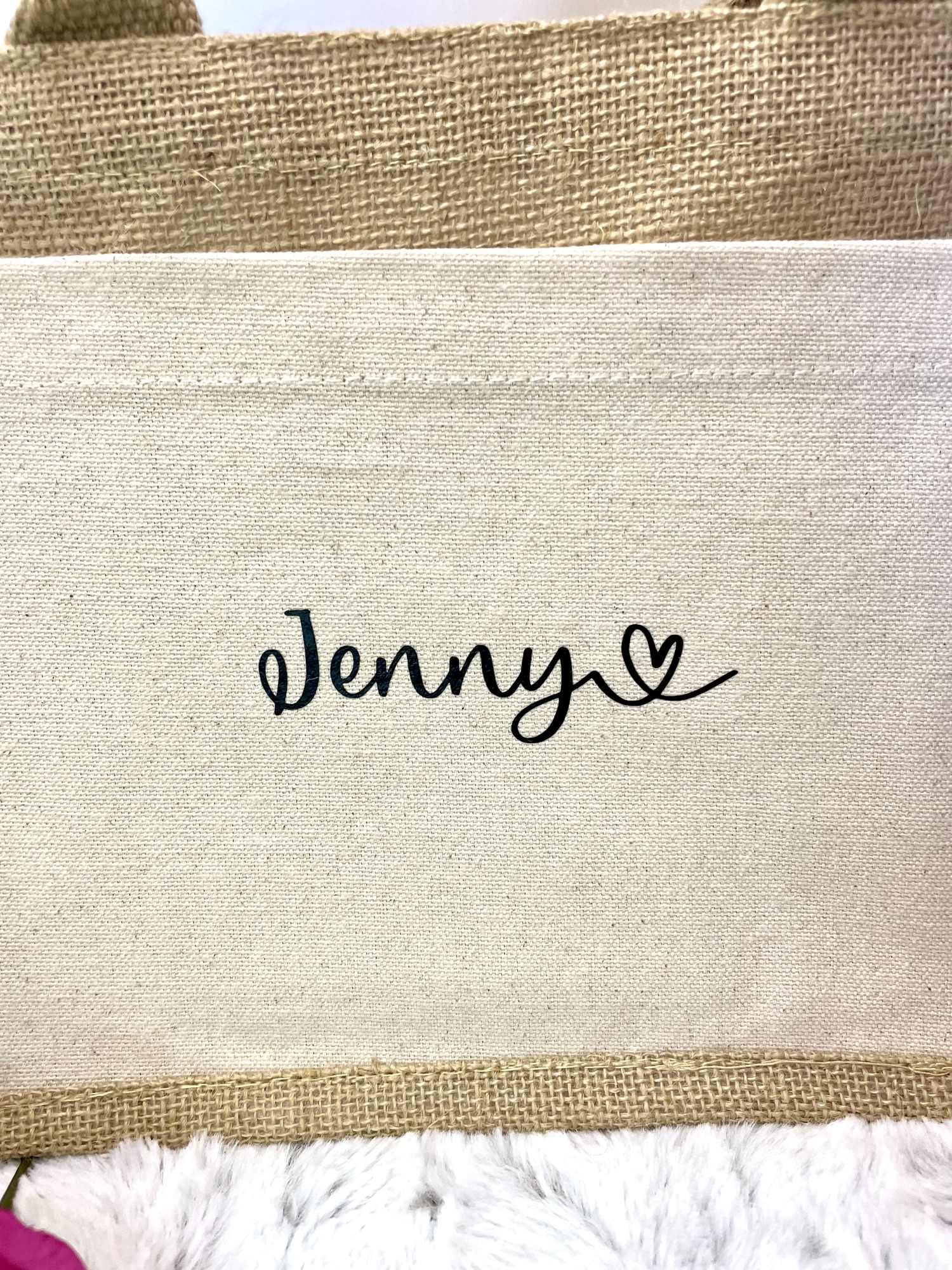 Personalised (Name with a heart) Cotton Pocket Jute Bag