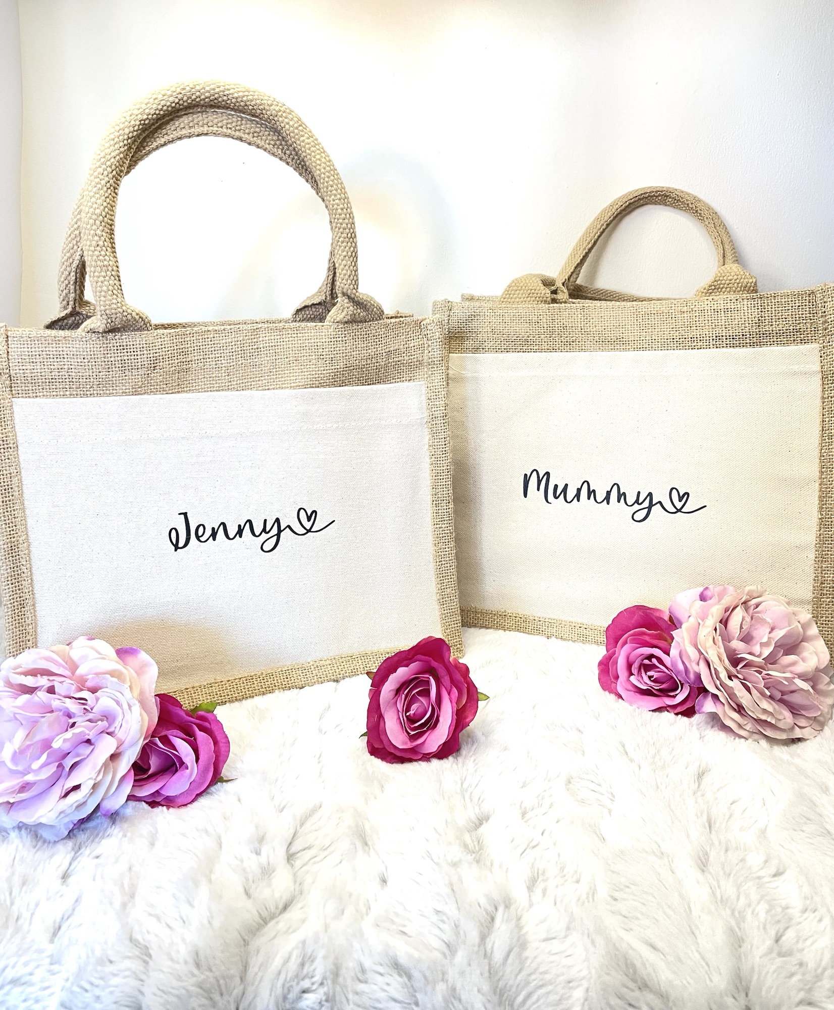 Be the first to review “Personalised (Name with a heart) Cotton Pocket Jute Bag”